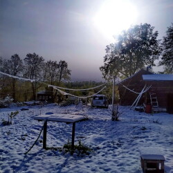 Будем кабачки выращивать, тыквы всякие и прочее, что не успели на дачу отвезти. Сейчас с собакой гуляла, Королёв засыпало снегом, вот прям земли не видно, январь.
